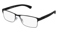 Emporio Armani 0EA1052 ref. 3094: armação Retangular em metal com linhas elegantes na cor Preto, preparada para lentes graduadas. Medidas: lente 53 mm, ponte 17 mm, haste 140 mm.