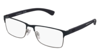 Emporio Armani 0EA1052 ref. 3155: armação Retangular em metal com linhas elegantes na cor Azul, preparada para lentes graduadas. Medidas: lente 55 mm, ponte 17 mm, haste 140 mm.