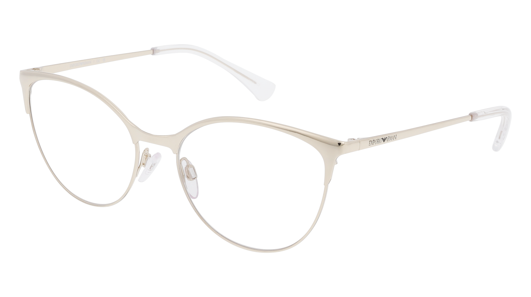 Armação Emporio Armani 0EA1087 (ref. 3013) em metal com linhas elegantes, formato Olho de Gato e cor Dourado. Medidas: lente 54 mm, ponte 17 mm, haste 140 mm.