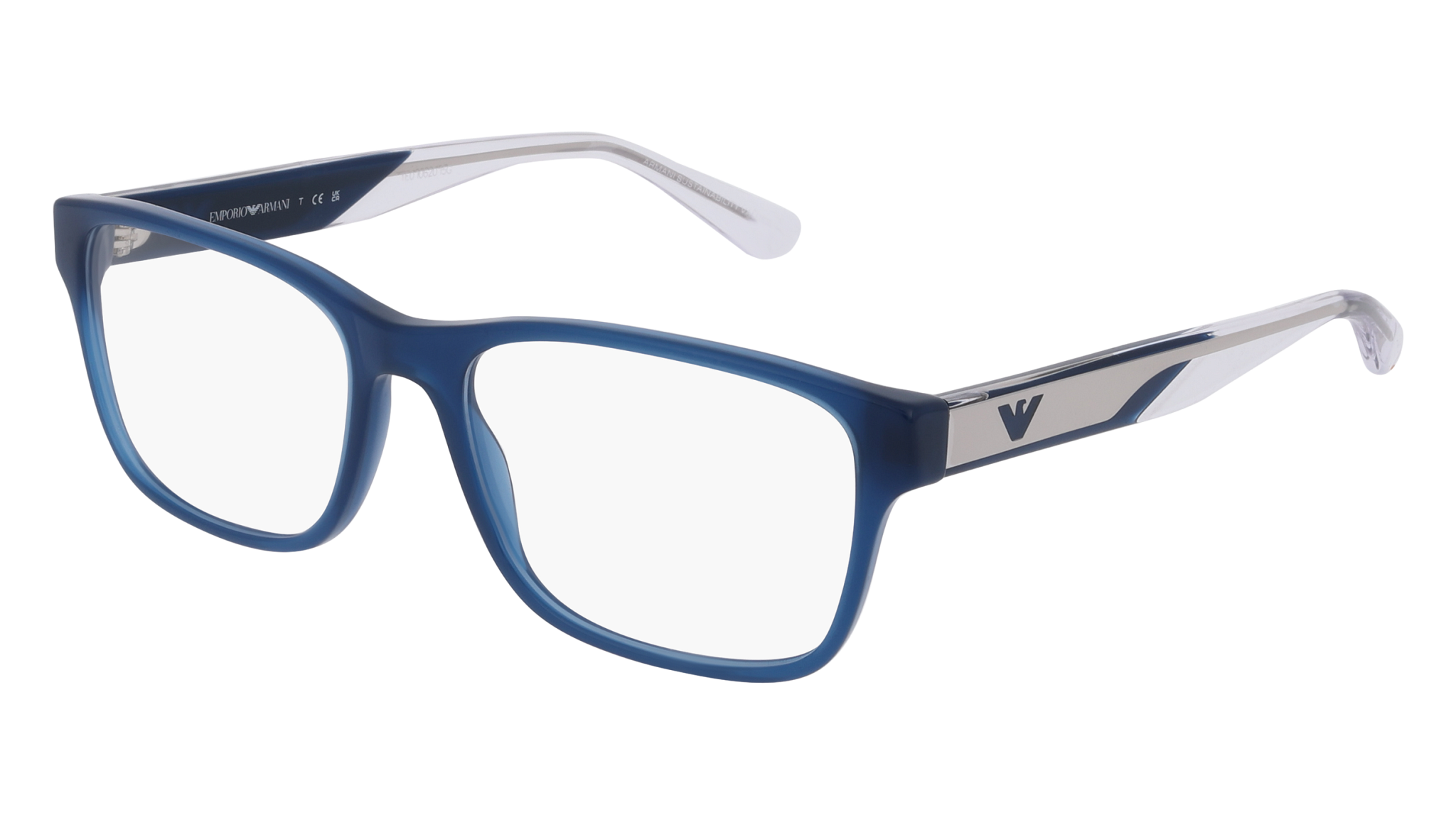 Emporio Armani 0EA3239 ref. 6092: armação Retangular em acetato leve e resistente na cor Azul, preparada para lentes graduadas. Medidas: lente 53 mm, ponte 17 mm, haste 145 mm.