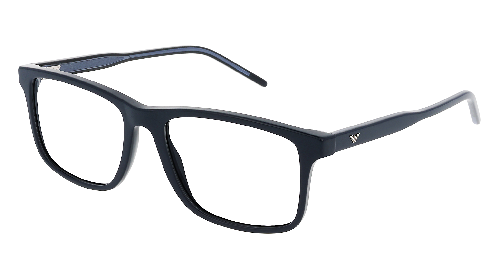 Emporio Armani 0EA3257 ref. 6256: armação Quadrado em acetato leve e resistente na cor Azul, preparada para lentes graduadas. Medidas: lente 53 mm, ponte 17 mm, haste 145 mm.
