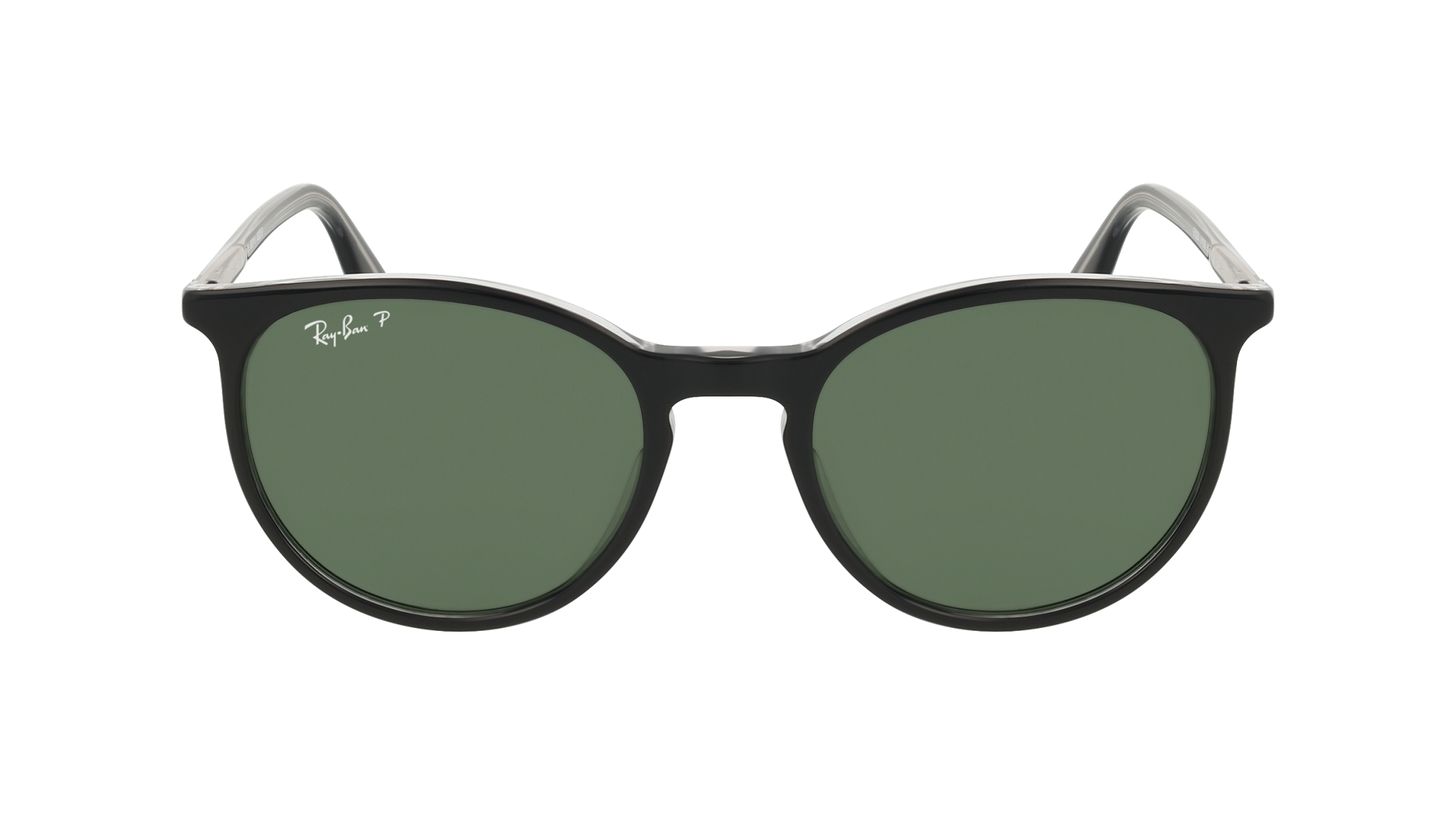 Óculos de sol Ray-Ban RB2204 919/58 unissexo, formato phantos em acetato, cor Preto sobre Transparente. Lentes em verde. Medidas 51-20-145 mm.