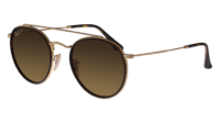 Óculos de sol Ray-Ban RB3647N 001/57 unissexo, formato redondo em metal, cor Arista dourado. Lentes em b-15 castanho. Medidas 51-22-145 mm.
