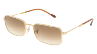 Óculos de sol Ray-Ban RB3746 001/51 unissexo, formato retangular em metal, cor Arista dourado. Lentes degradê em castanho transparente. Medidas 56-20-145 mm.