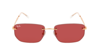 Óculos de sol Ray-Ban RB3768 001/D0 unissexo, formato irregular em metal, cor Arista dourado. Lentes espelhadas em vermelho espelhado violeta escuro. Medidas 56-17-145 mm.