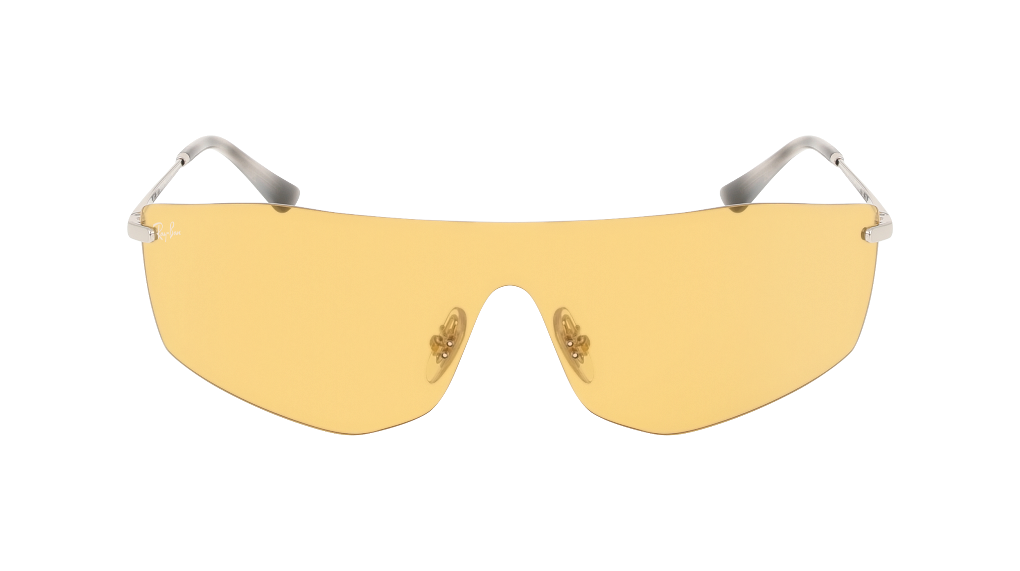 Óculos de sol Ray-Ban RB3781 003/85 unissexo, formato irregular em metal, cor Prateado. Lentes em amarelo. Medidas 141-120 mm.