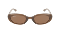 Os óculos de sol Ray-Ban RB4441D 677973 destacam-se pelo formato almofada e pela estrutura em material injetado, na cor Castanho Opala, criando um visual equilibrado e confortável.