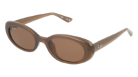 Óculos de sol Ray-Ban RB4441D 677973 unissexo, formato almofada em material injetado, cor Castanho Opala. Lentes em castanho-escuro. Medidas 53-21-145 mm.