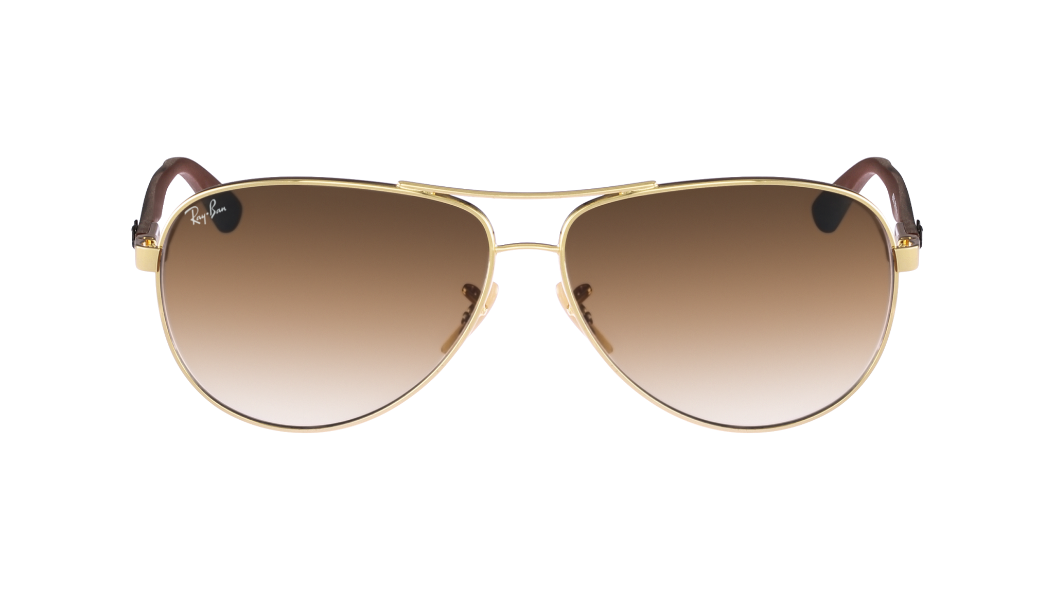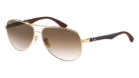 Óculos de sol Ray-Ban RB8313 Carbon Fibre 001/51 para homem, formato aviador em metal, cor Arista dourado. Lentes degradê em castanho-claro. Medidas 61-13-140 mm.