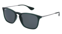 Óculos de sol Ray-Ban RB4187 Chris 666381 para homem, formato quadrado em material injetado, cor Verde Transparente. Lentes em cinzento-escuro. Medidas 54-18-145 mm.