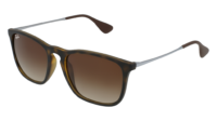 Óculos de sol Ray-Ban RB4187 Chris 856/13 para homem, formato quadrado em material injetado, cor Havana. Lentes degradê em castanho. Medidas 54-18-145 mm.