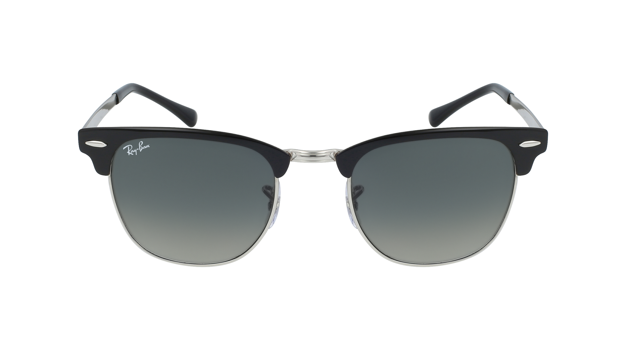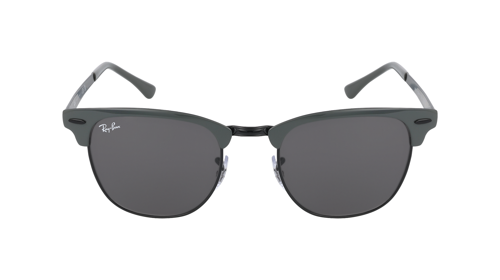 Os óculos de sol Ray-Ban RB3716 Clubmaster Metal 186/58 destacam-se pelo formato quadrado e pela estrutura em metal, na cor Preto, criando um visual com linhas marcantes.