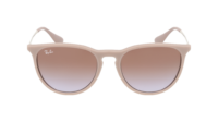 Óculos de sol Ray-Ban RB4171 Erika 600068 para mulher, formato phantos em material injetado, cor Areia Escuro. Lentes em castanho/violeta. Medidas 54-18-145 mm.