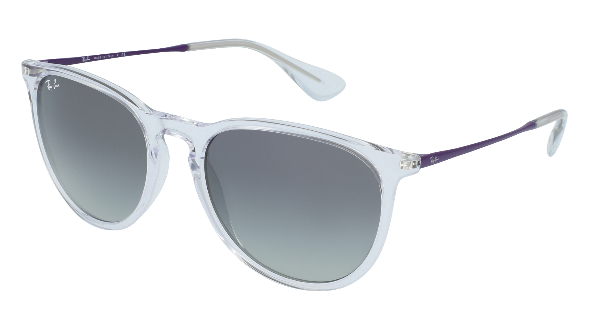Óculos de sol Ray-Ban RB4171 Erika 651611 para mulher, formato phantos em material injetado, cor Transparente. Lentes degradê em cinzento. Medidas 54-18-145 mm.