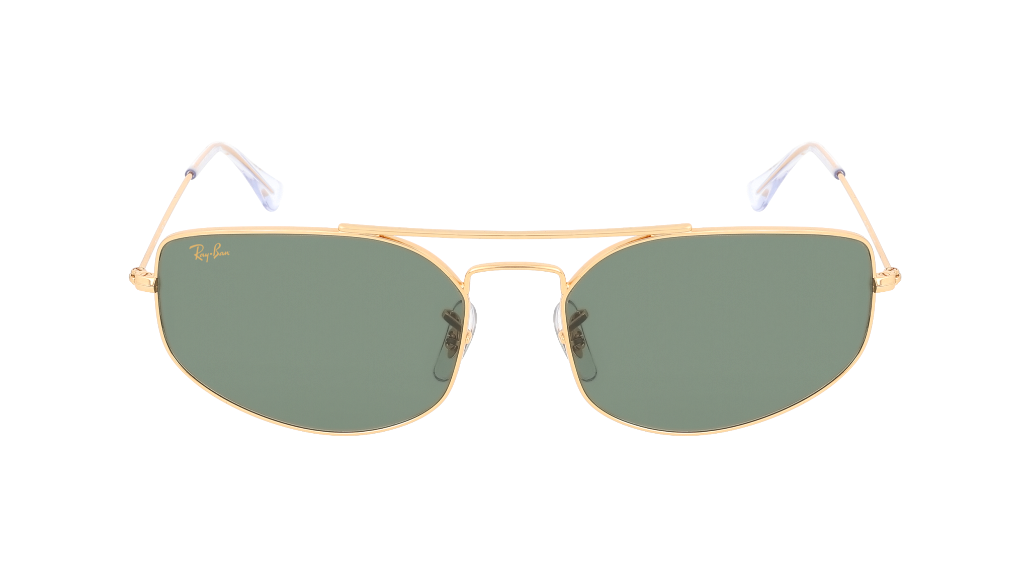Óculos de sol Ray-Ban RB3845 Explorer 5 919631 unissexo, formato irregular em metal, cor Dourado Legend. Lentes em g-15 verde. Medidas 57-17-140 mm.