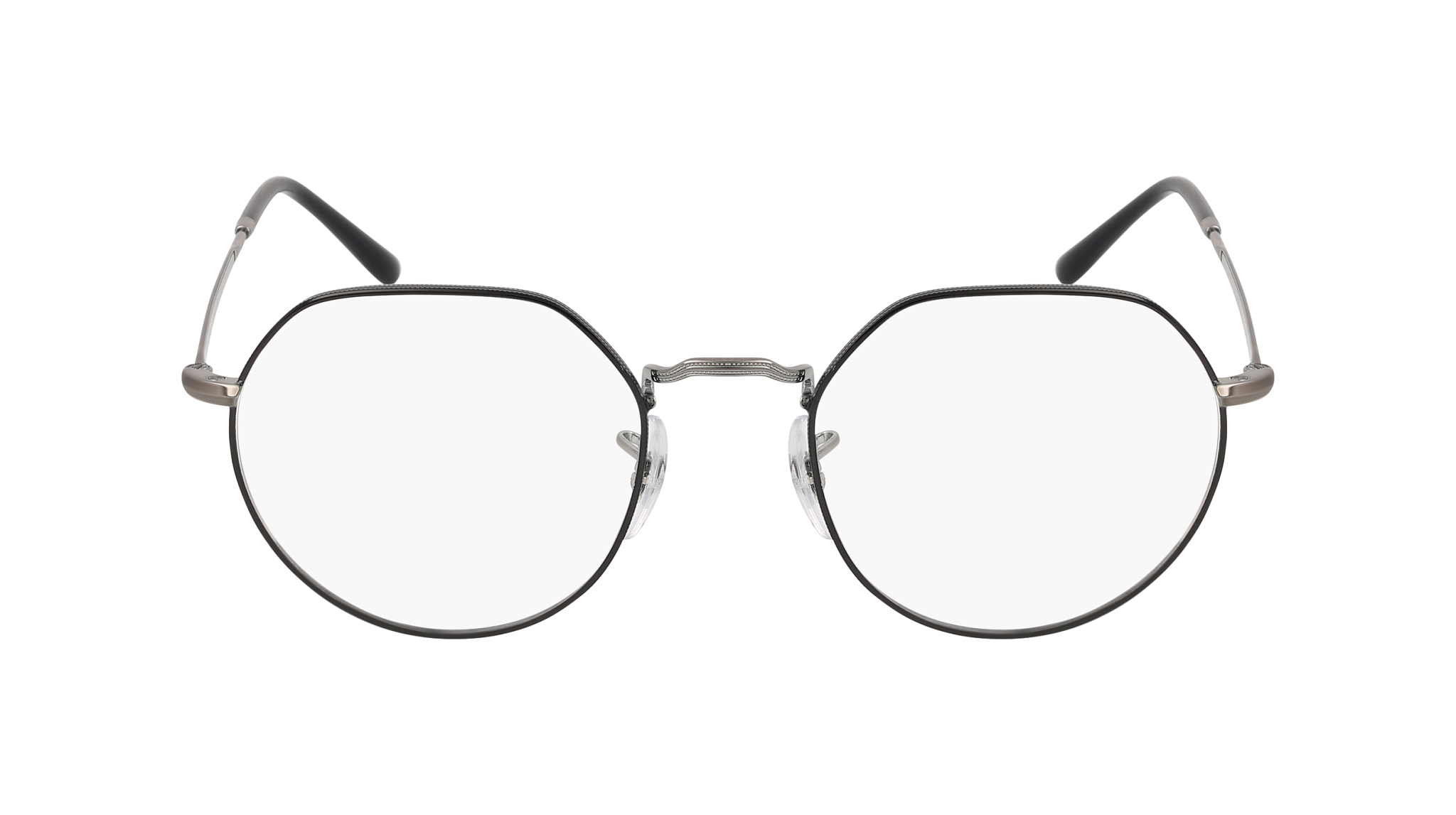 Armação de óculos graduados Ray-Ban RX6465 Jack 3179 unissexo, formato irregular em metal, na cor Preto. Medidas 49-20-140 mm.