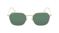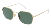 Óculos de sol Ray-Ban RB3694 Jim 001/31 unissexo, formato irregular em metal, cor Arista dourado. Lentes em verde. Medidas 53-20-145 mm.
