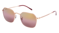 Óculos de sol Ray-Ban RB3694 Jim 9202G9 unissexo, formato irregular em metal, cor Ouro Rosa. Lentes em vermelho/dourado. Medidas 53-20-145 mm.