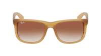 Óculos de sol Ray-Ban RB4165 Justin 681413 para homem, formato quadrado em nylon, cor Bege Borracha. Lentes degradê em castanho. Medidas 54-16-145 mm.