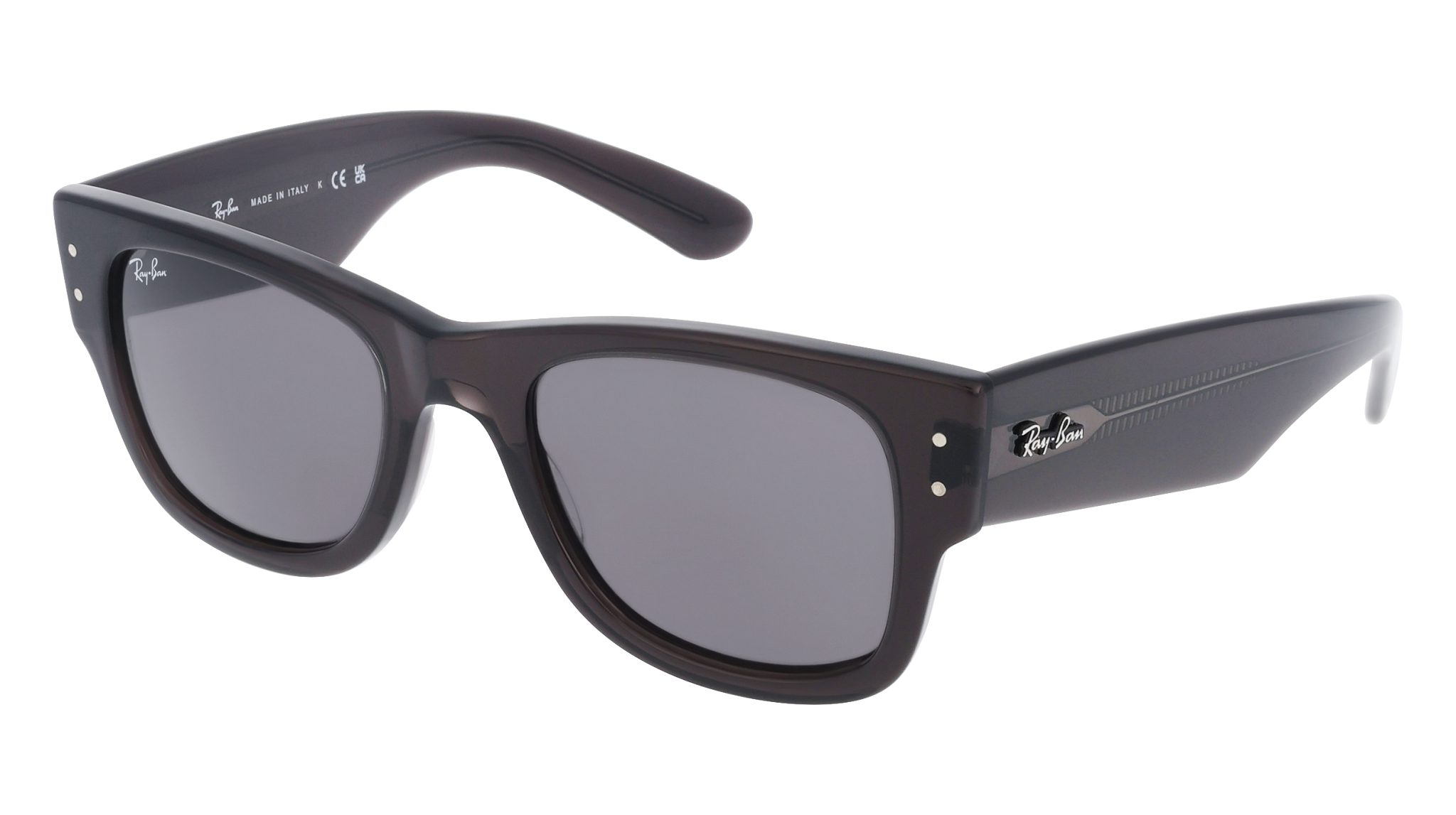 Óculos de sol Ray-Ban RB0840S Mega Wayfarer 1390B1 unissexo, formato quadrado em propionato, cor Preto Transparente. Lentes em cinzento-escuro. Medidas 51-21-145 mm.