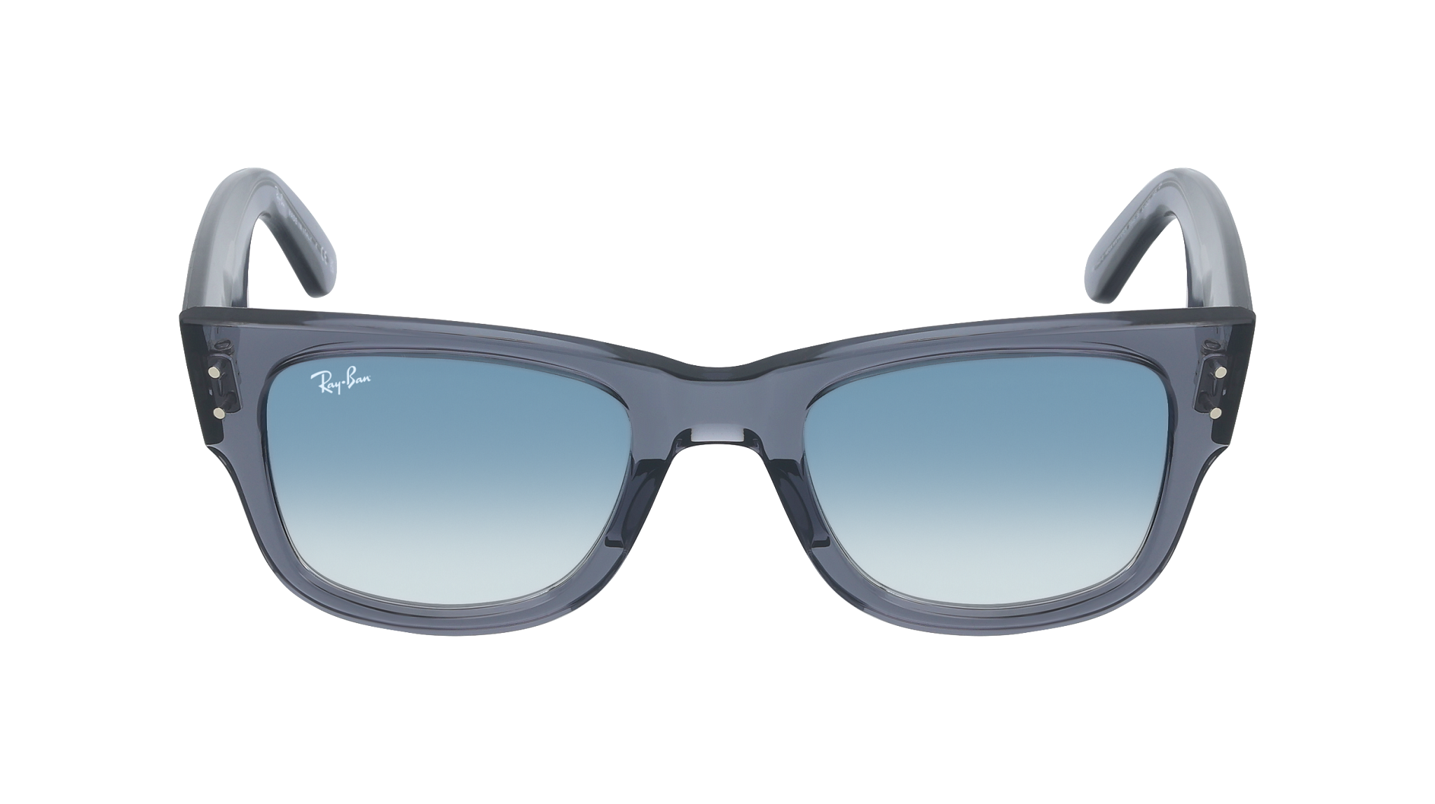 Óculos de sol Ray-Ban RB0840S Mega Wayfarer 68463F unissexo, formato quadrado em propionato, cor Cinzento Transparente. Lentes degradê em azul transparente. Medidas 51-21-145 mm.