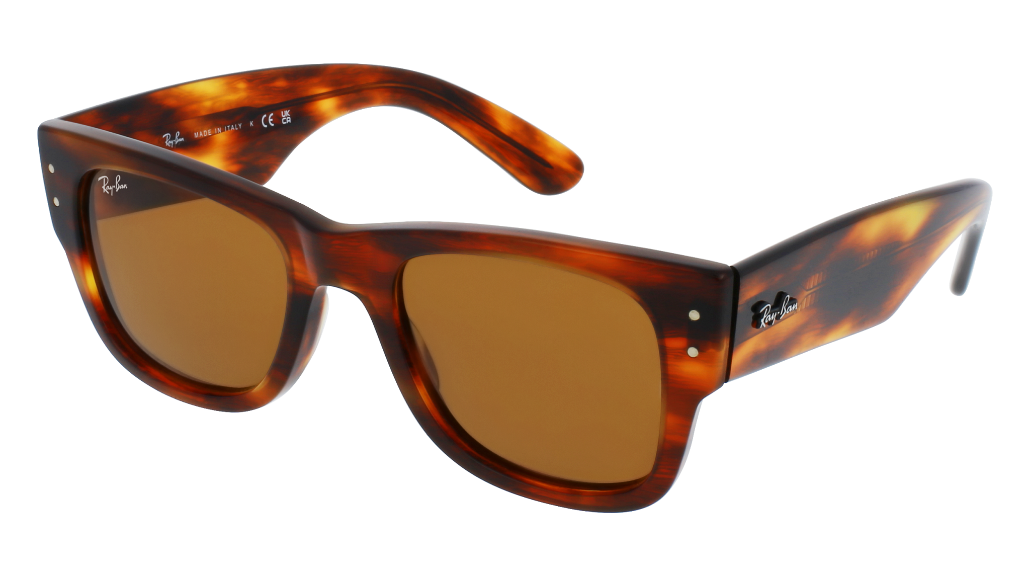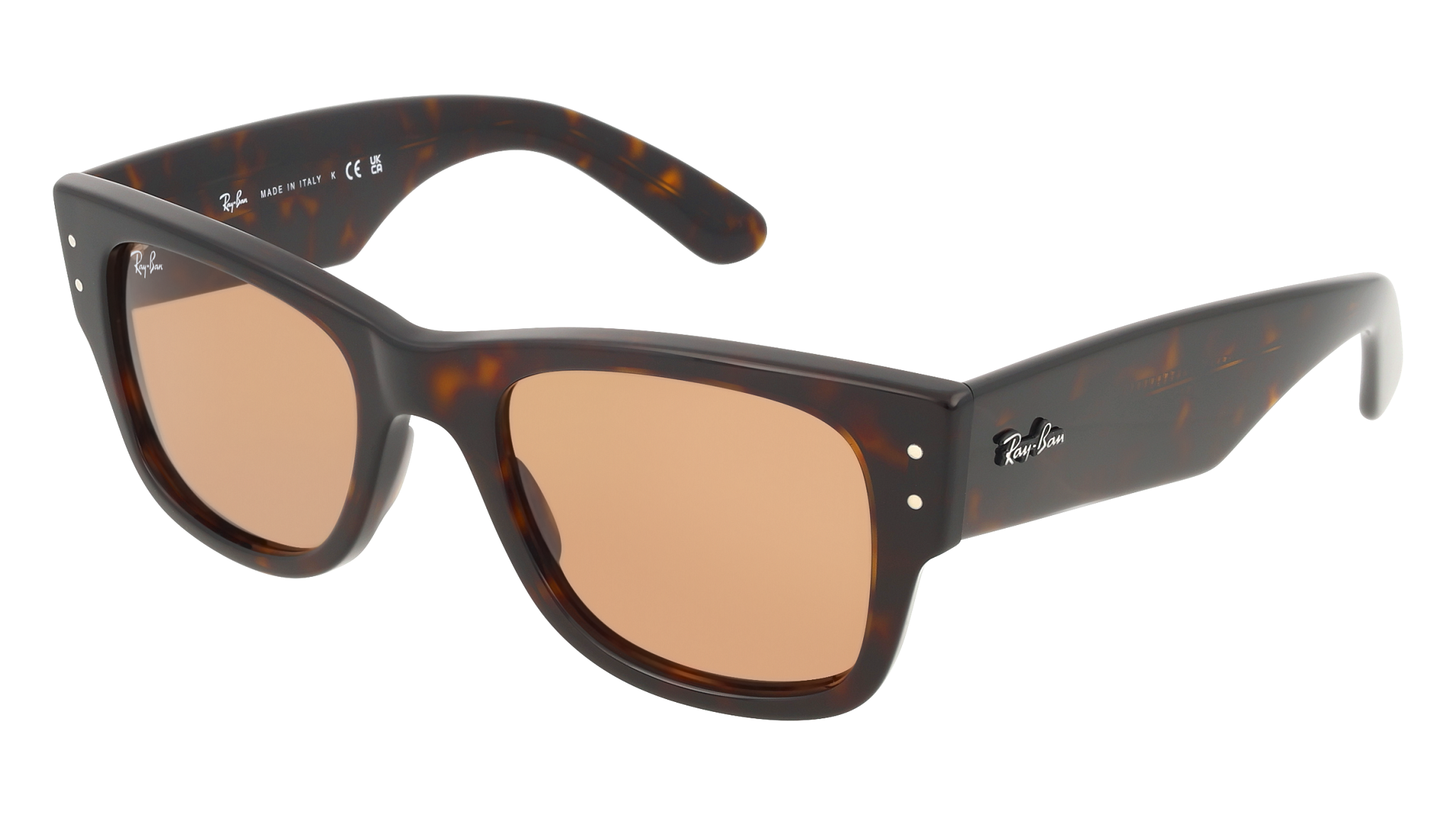 Os óculos de sol Ray-Ban RB0840S Mega Wayfarer 902/53 destacam-se pelo formato quadrado e pela estrutura em propionato, na cor Havana, criando um visual moderno e versátil.