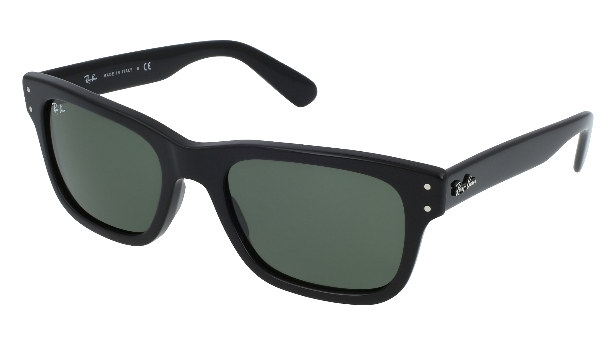 Óculos de sol Ray-Ban RB2283 Mr Burbank 901/31 para homem, formato retangular em acetato, cor Preto. Lentes em g-15 verde. Medidas 52-20-145 mm.