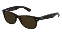 Óculos de sol Ray-Ban RB2132 New Wayfarer 902/57 unissexo, formato quadrado em nylon, cor Tartaruga. Lentes em b-15 castanho. Medidas 55-18-145 mm.