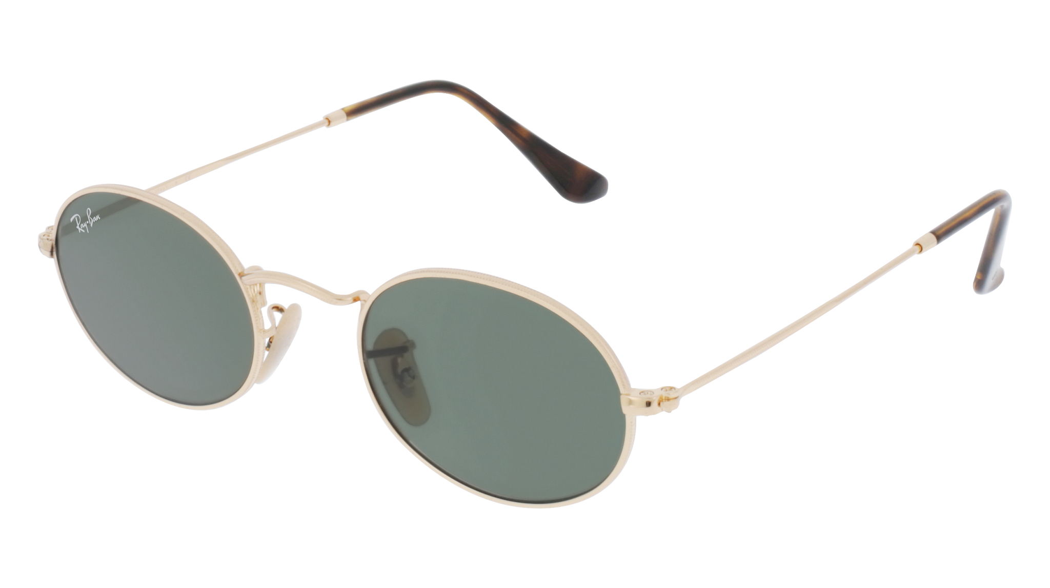 Óculos de sol Ray-Ban RB3547N Oval 001 unissexo, formato oval em metal, cor Arista dourado. Lentes em g-15 verde. Medidas 48-21-145 mm.