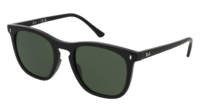 Ray-Ban RB2210 em acetato na cor preto, formato quadrado com acabamento brilhante. Lentes verde com proteção UV. Medidas 53-21-145. Estilo intemporal.