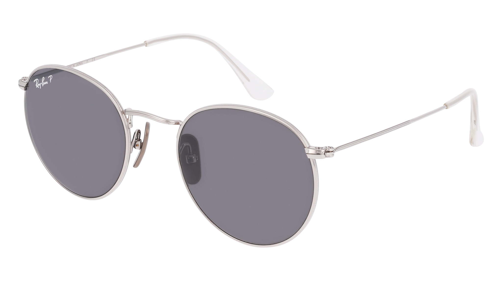 Óculos de sol Ray-Ban RB8247 Round 920948 unissexo, formato phantos em titânio, cor Prateado. Lentes polarizadas em preto. Medidas 50-21-145 mm.
