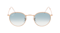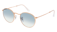 Óculos de sol Ray-Ban RB3447 Round Metal 92023F para homem, formato redondo em metal, cor Ouro Rosa. Lentes em transparente e azul. Medidas 47-21-140 mm.