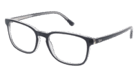 Modelo Ray-Ban RX5418 referência 8367, armação retangular em acetato na cor cinzento escuro sobre cinza transparente. Armação unissexo ideal para uso diário, pronta para montagem de lentes graduadas.