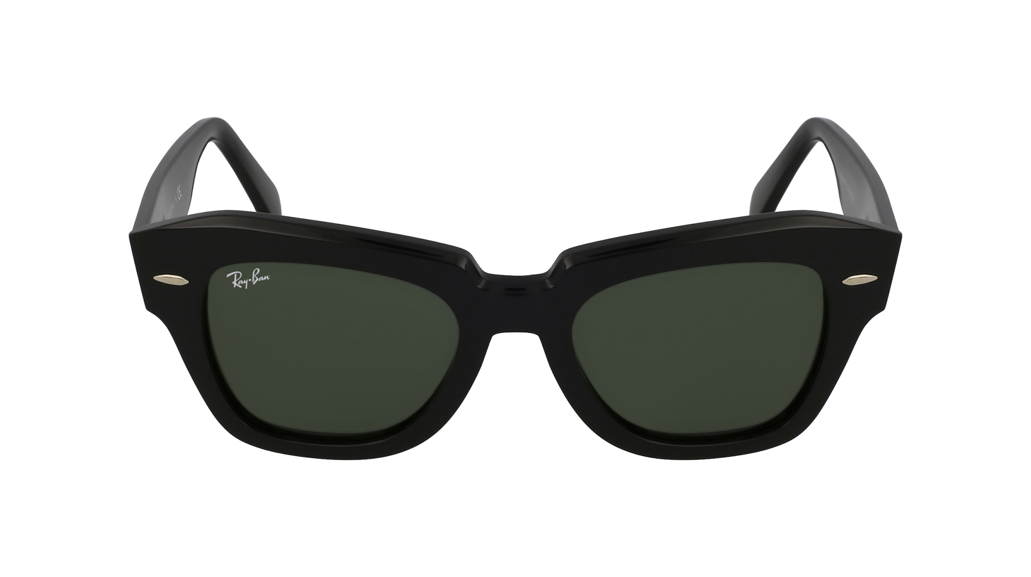 Óculos de sol Ray-Ban RB2186 State Street 901/31 unissexo, formato quadrado em acetato, cor Preto. Lentes em g-15 verde. Medidas 49-20-145 mm.