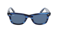 Óculos de sol Ray-Ban RB2140 Wayfarer 1361R5 unissexo, formato quadrado em acetato, cor Azul Listrado. Lentes em azul. Medidas 50-22-150 mm.