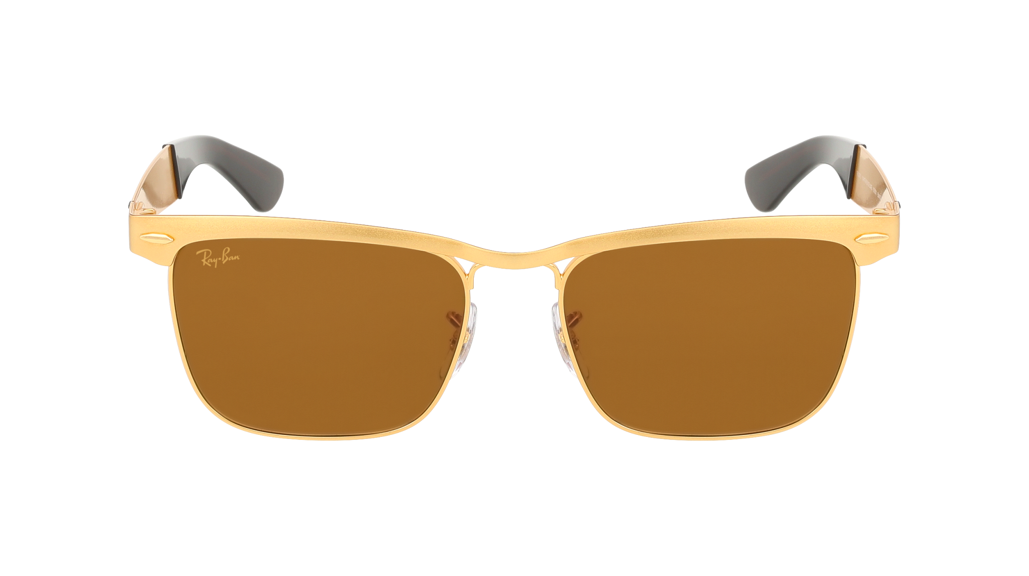 Os óculos de sol Ray-Ban RB3875 Wayfarer Deluxe 927631 destacam-se pelo formato quadrado e pela estrutura em metal, na cor Dourado Legend com jato de areia, criando um visual equilibrado e atual.