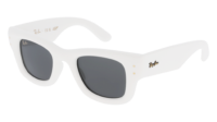 Os óculos de sol Ray-Ban RB4940 Wayfarer Puffer 671/87 destacam-se pelo formato quadrado e pela estrutura em nylon, na cor Branco, criando um visual com linhas marcantes.