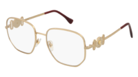 Óculos graduados Versace 0VE1283 1480 – formato irregular, armação em metal, cor Bordeaux/Dourado, calibre 54 mm. Para senhora, ideal para lentes graduadas.