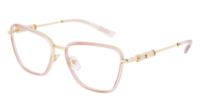 Óculos graduados Versace 0VE1292 1507 – formato borboleta, armação em metal, cor Transparente Pêssego, calibre 54 mm. Para senhora, ideal para lentes graduadas.