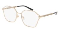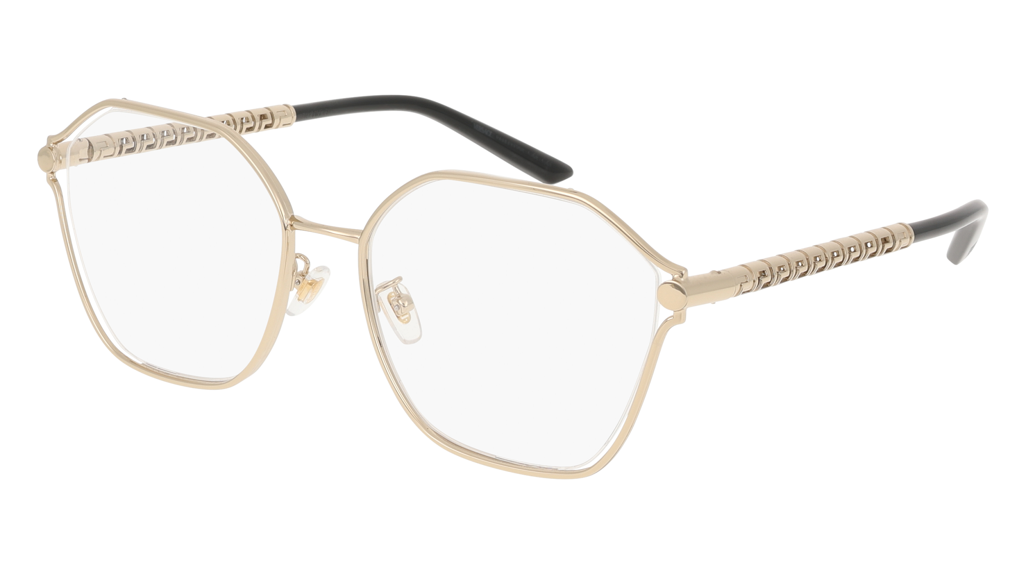 Óculos graduados Versace 0VE1299D 1252 – formato irregular, armação em metal, cor Dourado Pálido, calibre 55 mm. Para senhora, ideal para lentes graduadas.