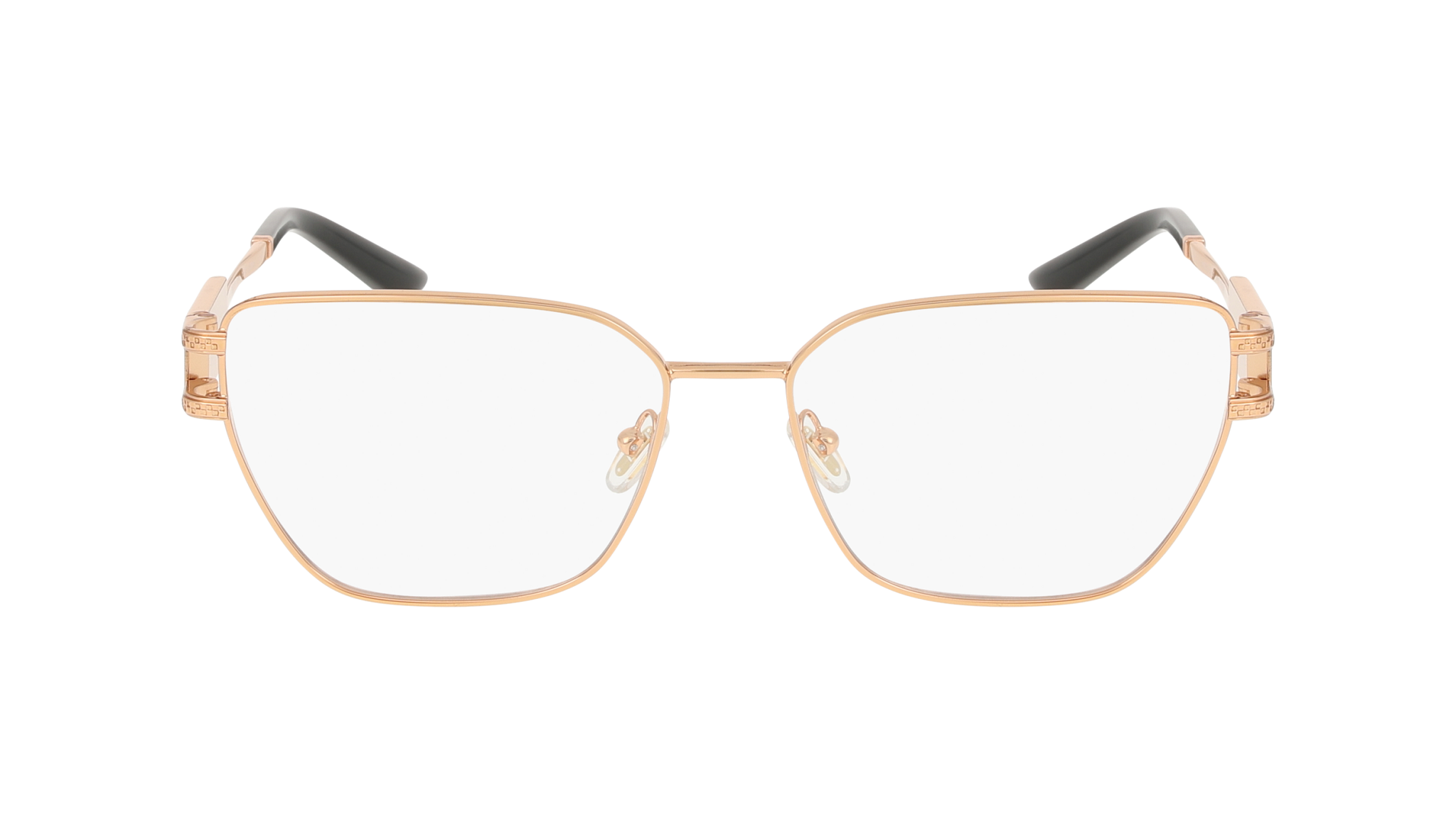 Óculos graduados Versace 0VE1301 1412 – formato olho de gato, armação em metal, cor Ouro Rosa, calibre 55 mm. Para senhora, ideal para lentes graduadas.