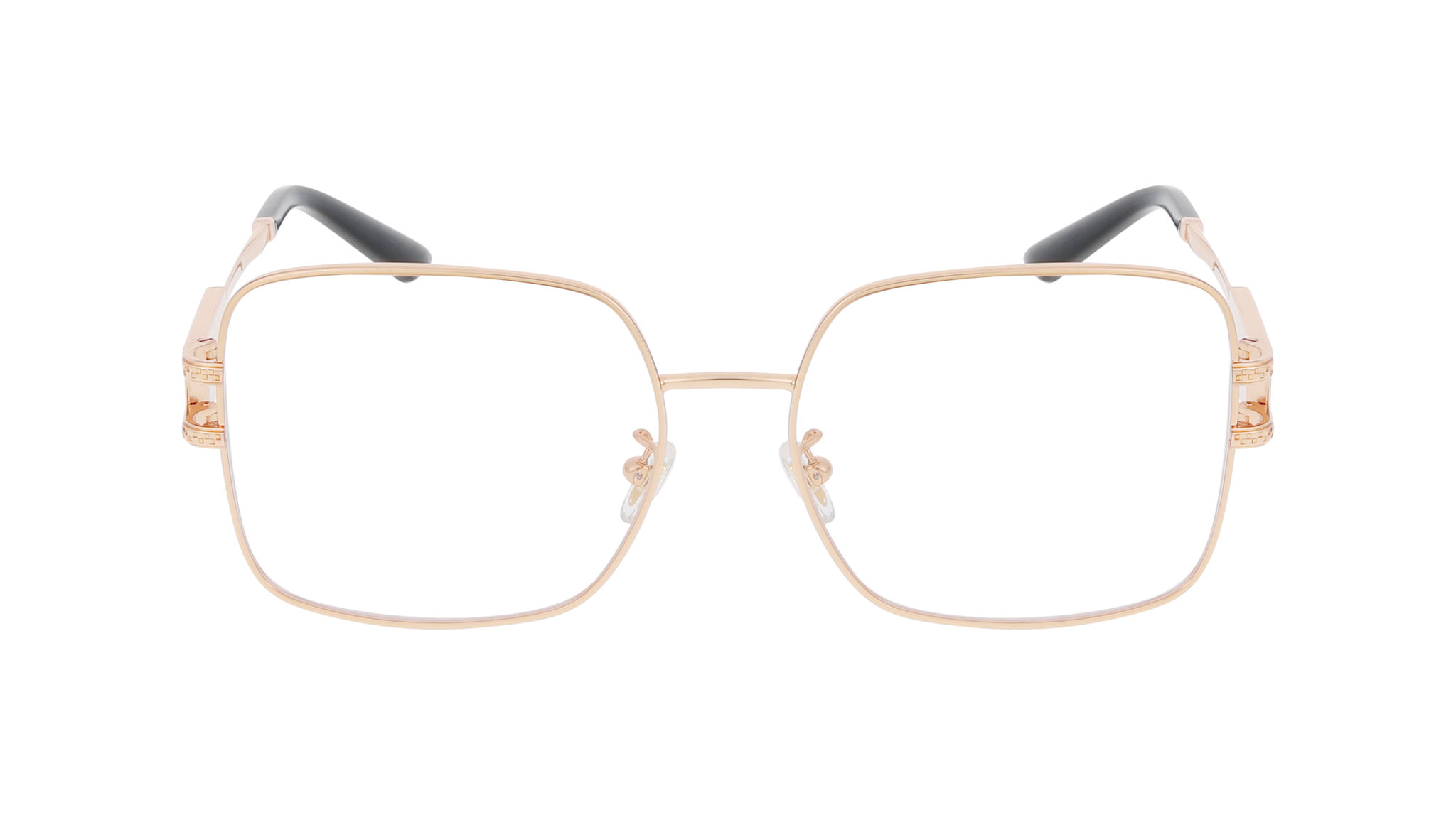 Óculos graduados Versace 0VE1303D 1412 – formato quadrado, armação em metal, cor Ouro Rosa, calibre 56 mm. Para senhora, ideal para lentes graduadas.