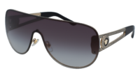 Óculos de sol Versace 0VE2166 12528G de senhora — formato piloto • com meio aro • armação dourado pálido • lentes azul-escuro degradê cinzento-claro. Um modelo com presença, ideal para quem gosta…