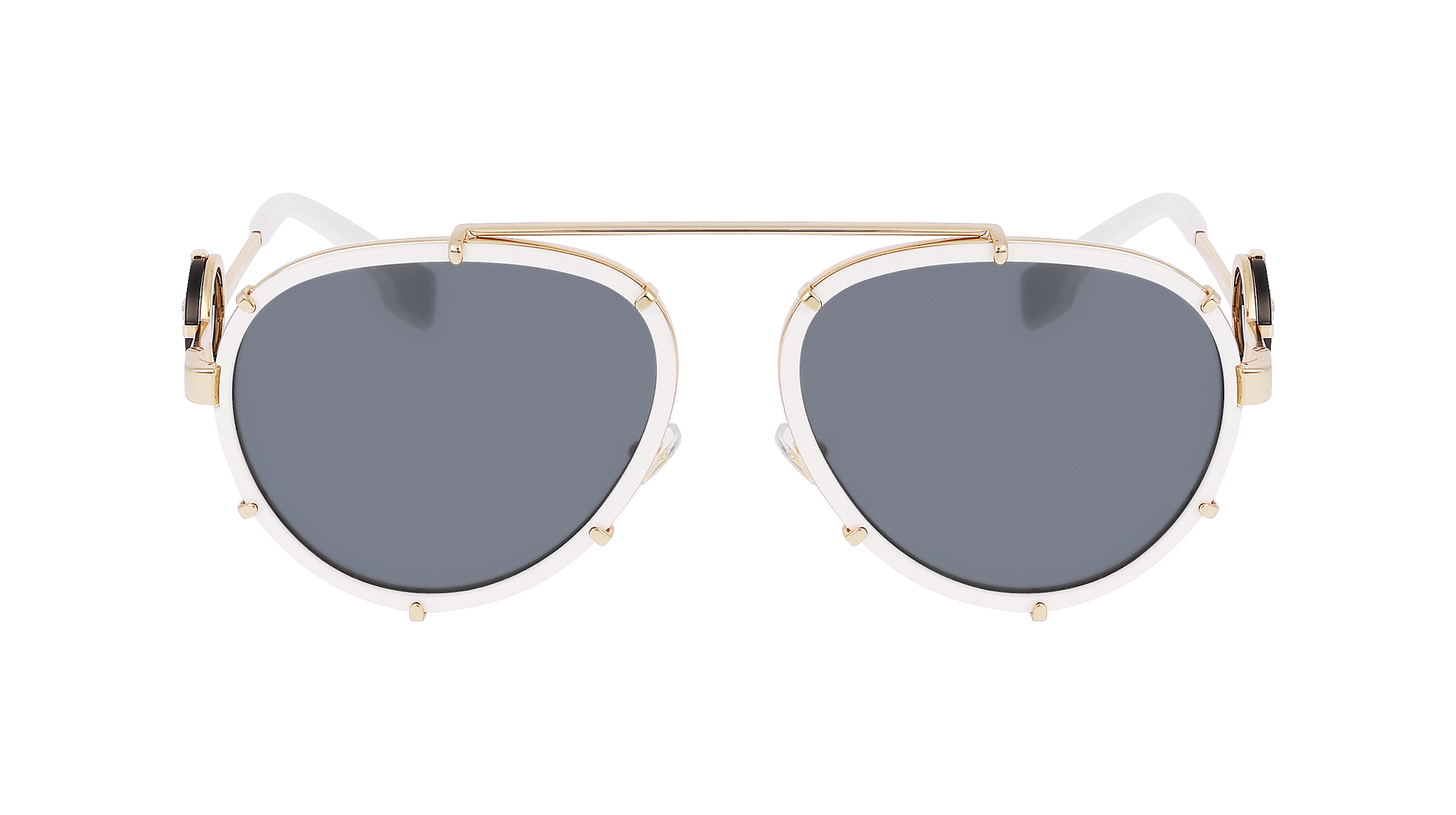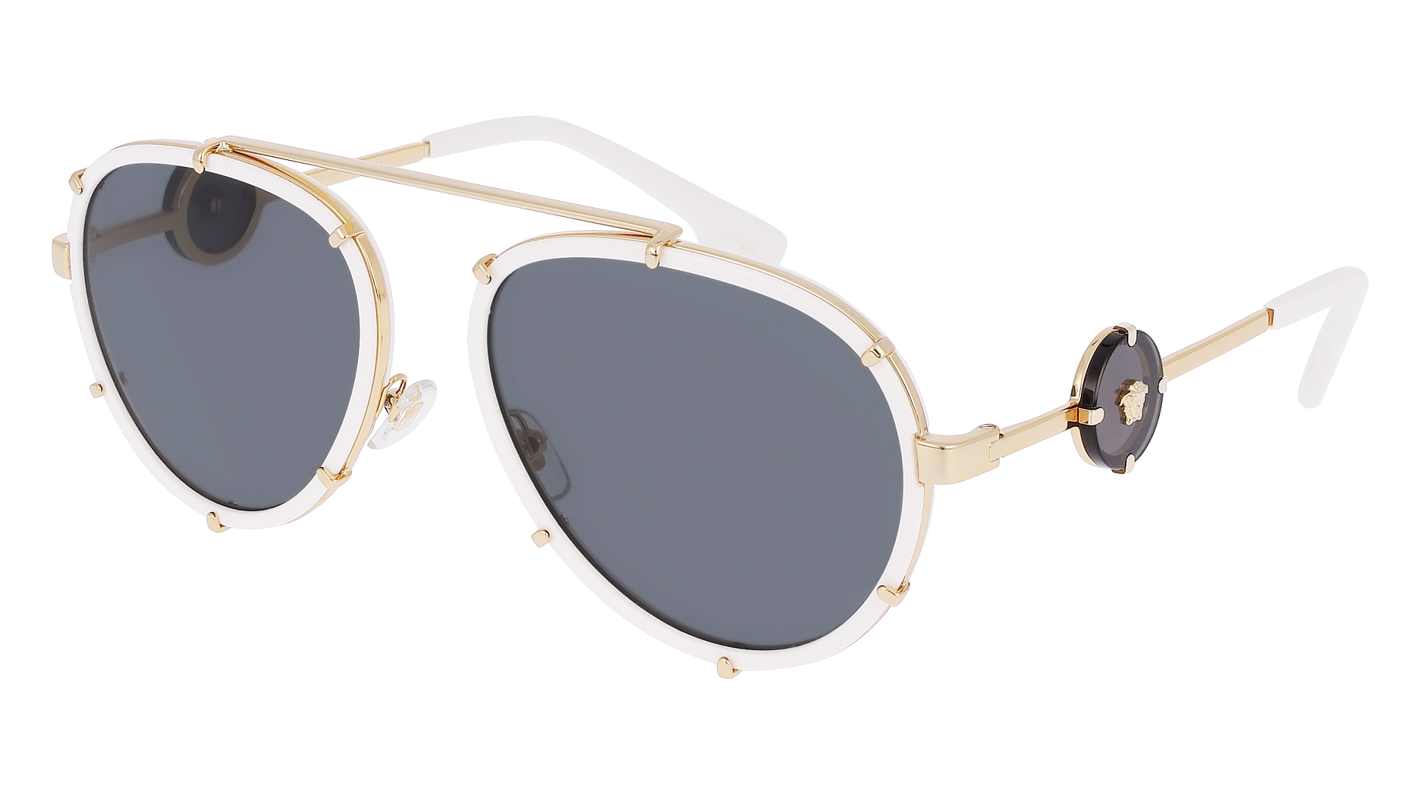 Óculos de sol Versace 0VE2232 147187 de senhora — formato piloto • com aro completo • armação branco • lentes cinzento-escuro. Design equilibrado para quem procura impacto sem exageros Estética…