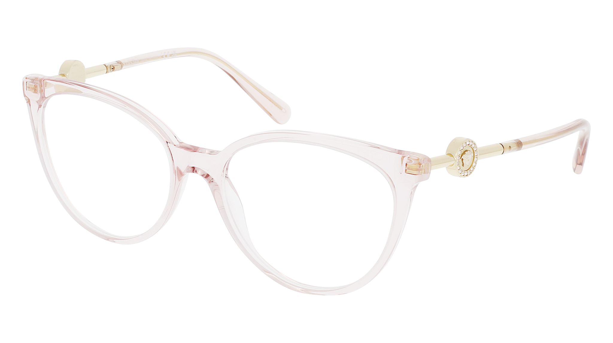 Óculos graduados Versace 0VE3298B 5339 – formato phantos, armação em acetato, cor Rosa Transparente, calibre 55 mm. Para senhora, ideal para lentes graduadas.