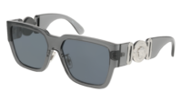 Óculos de sol Versace 0VE4483D 593/87 de homem — formato quadrado • com aro completo • armação cinzento transparente • lentes cinzento-escuro. Uma escolha pensada para destacar a tua imagem com…